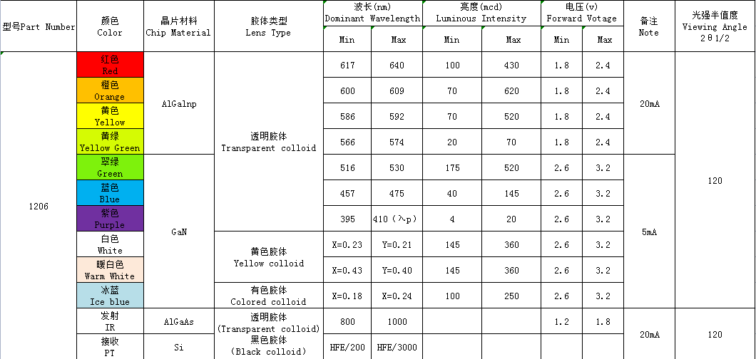 1206(單、雙、全彩、ICRGB、發射接收)全系列
