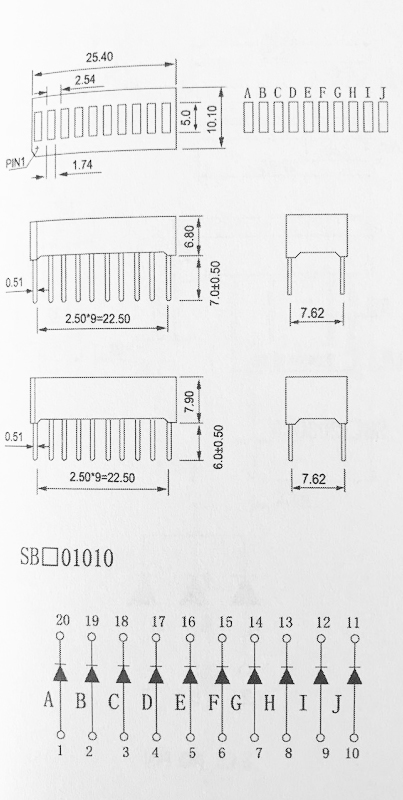 外形尺寸:25.40×10.10×6.80mm或25.40×10.10×7.90mm